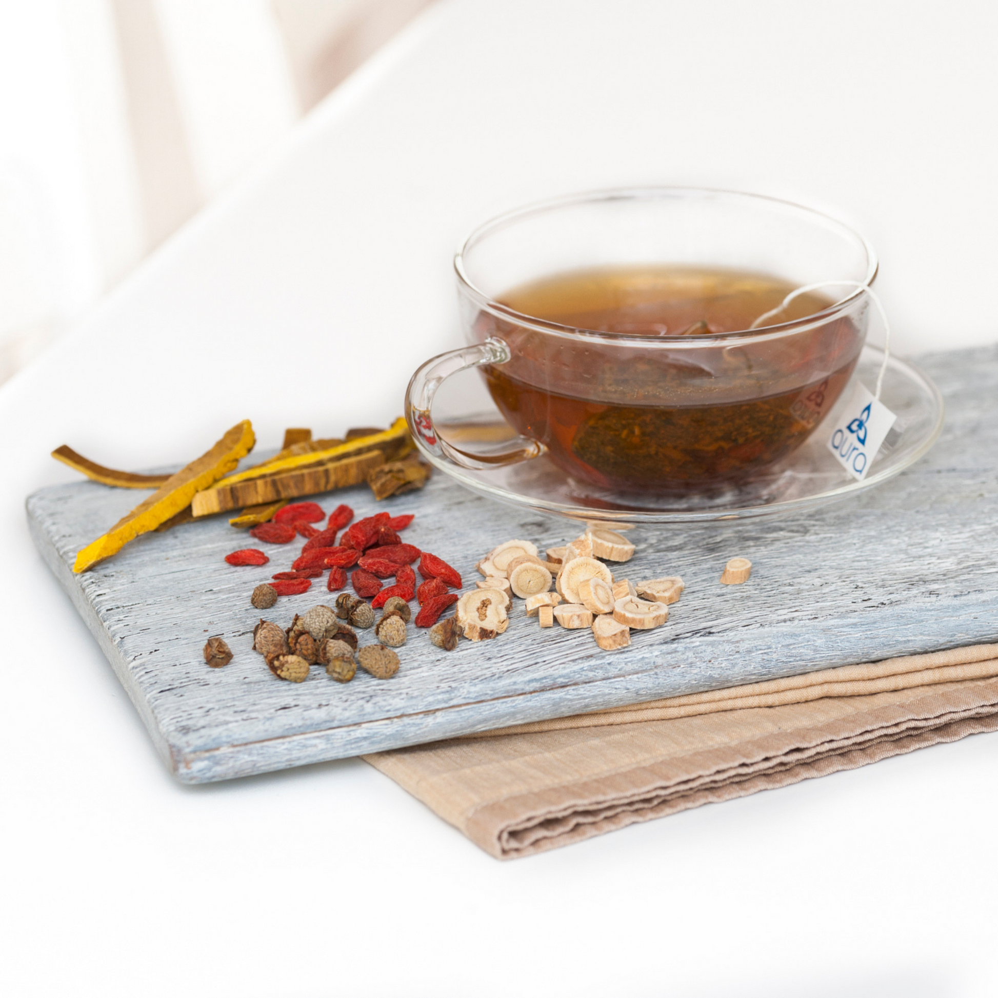 Die Zutaten: GoJi-Beere 30%, Ginseng 25%, Astragalus-Wurzel 20%, Palmenblatt-Himbeerblatt 20%, Amur-Korktbaumrinde 5%.